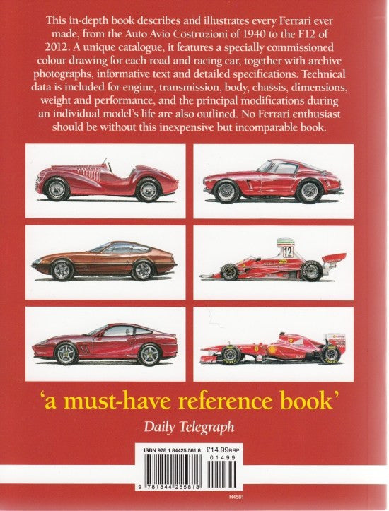 This in-depth book describes and illustrates every Ferrari ever made, from the Auto Avio Costruzioni of 1940 to the F12 of 2012.